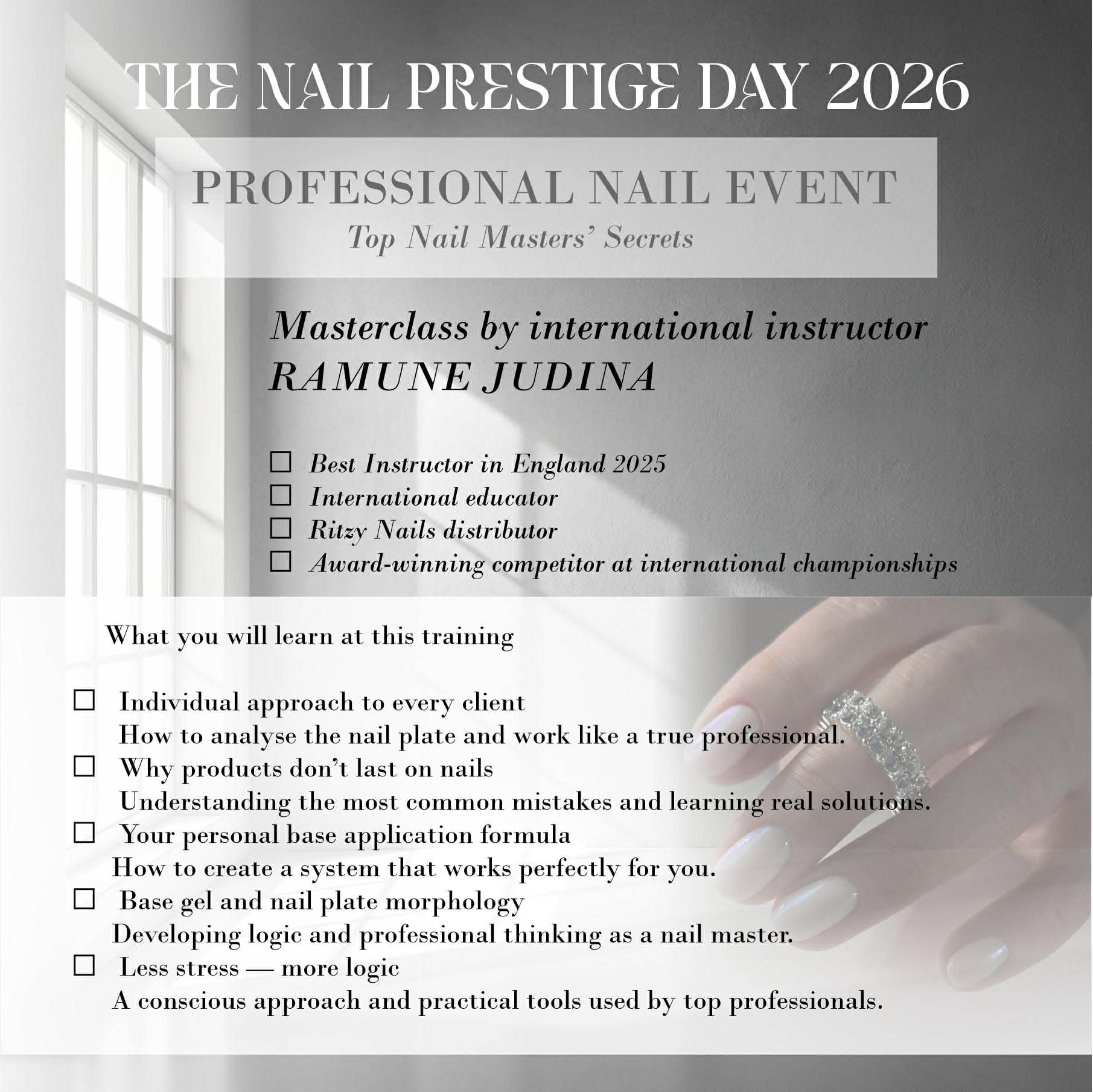 - How to analyse the nail plate and work like a true professional.